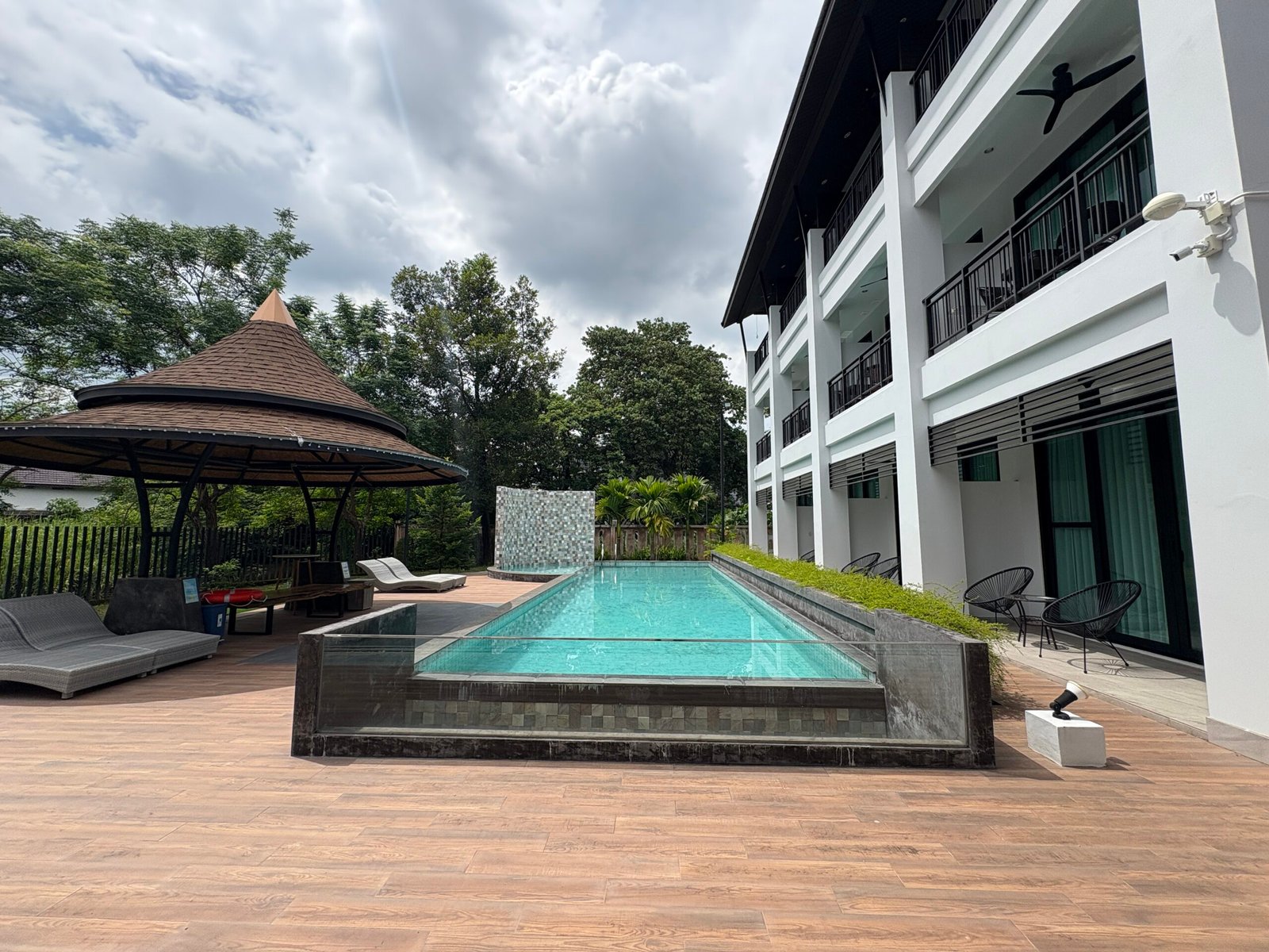 ผู้ที่เข้า พักสามารถว่ายน้ำในบรรยากาศ ที่แวดล้อมด้วยความเป็น ธรรมชาติ ล้อมรอบด้วยแม่น้ำแม่คาวท่ามกลางที่พักที่บรรจงออกแบบใหท้ันสมัยเสมอในบรรยากาศที่อบอวลดว้ยกลิ่นไอแห่งวัฒนา ธรรมภาคเหนือ เพื่อความสุขในการเข้าพัก